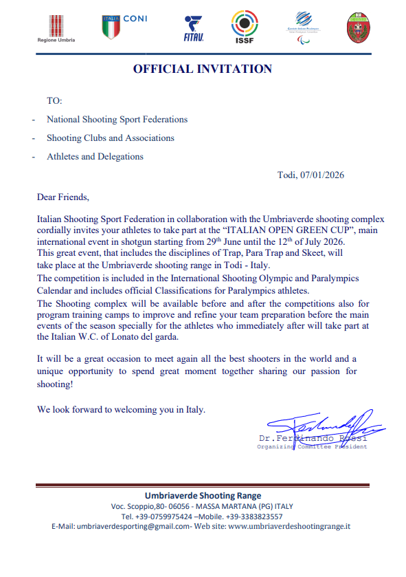 Initially called Umbria-Todi, the club changed its name to UMBRIAVERDE in 2006 to highlight the wonderful green setting and tranquillity typical of the Umbrian hills where the shooting stand is located and to emphasise the close relationship between the sport, the environment and the surrounding nature.